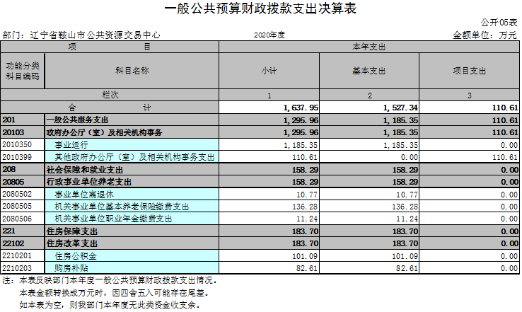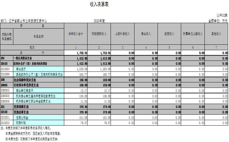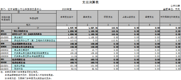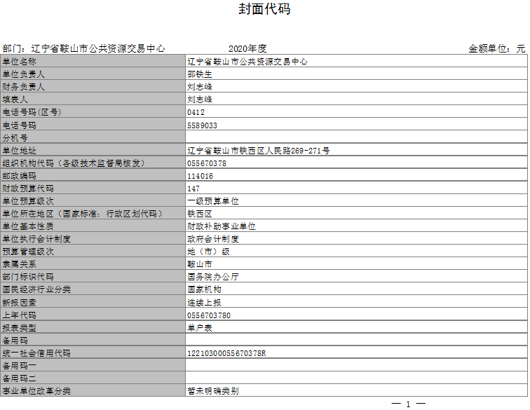 第四部分 鞍山市公共资源交易中心2020年度部门决算报表